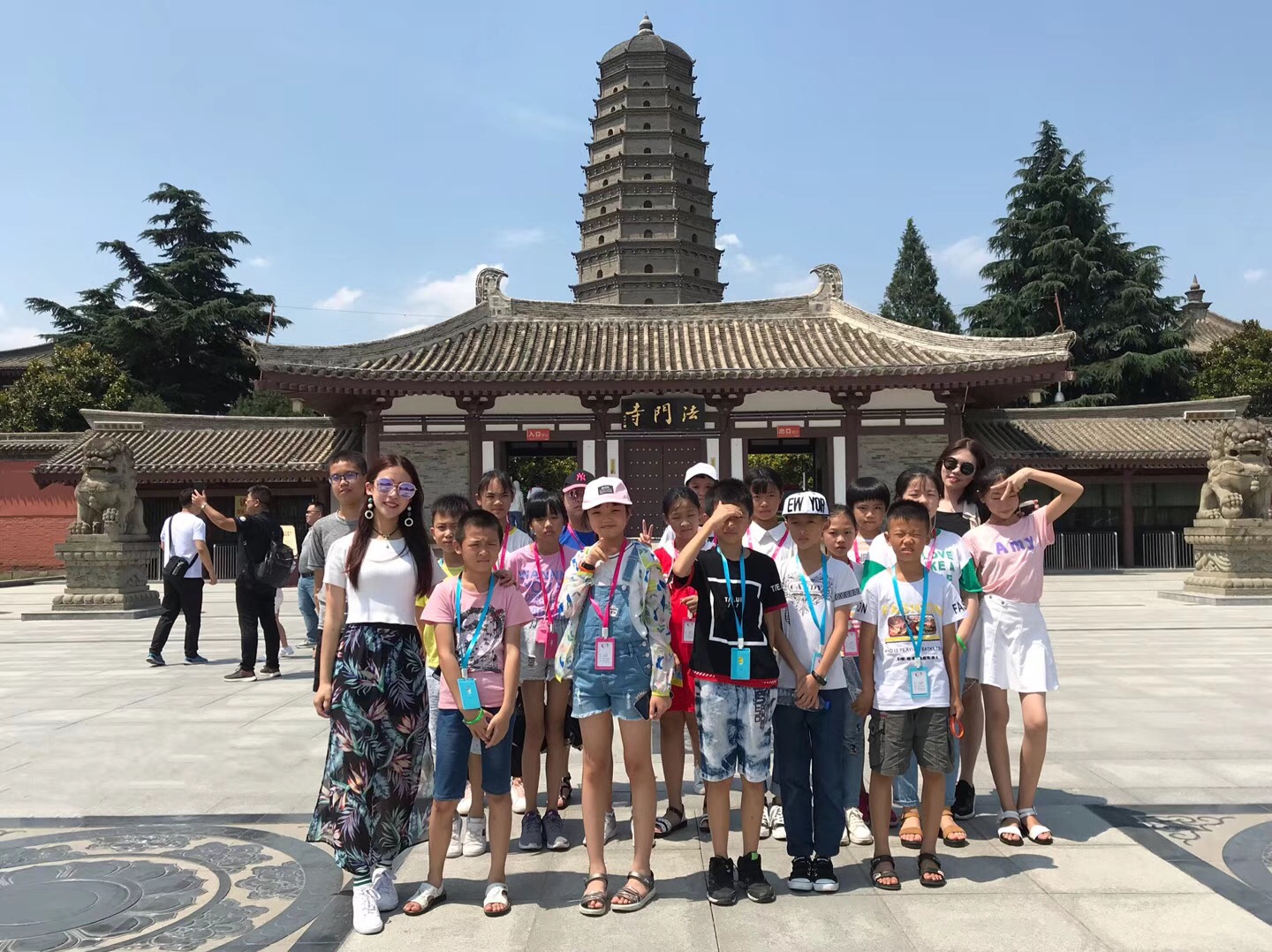 我們一同參觀了佛教圣地法門寺院,這里真的是步步古跡,件件珍品。下圖為導(dǎo)游在跟小朋友講解法門寺一些歷史事跡。